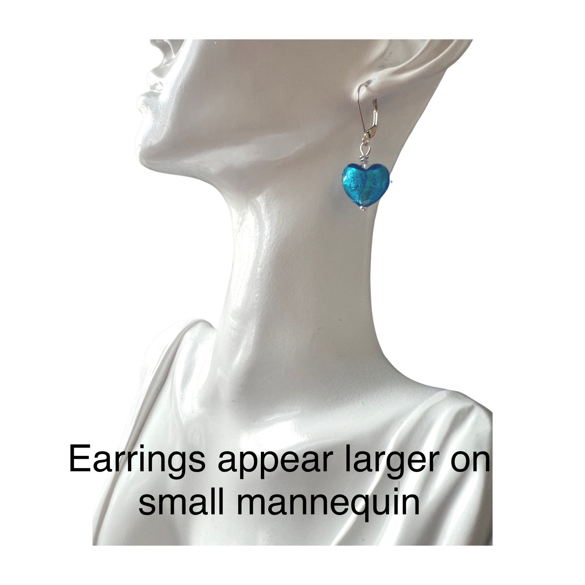 Earrings can be washed with a mild soap and stored in a box when not being used. No 2 pieces of Murano Glass are exact. Colours may vary slightly from photos. Glass may look different in various lights as well.