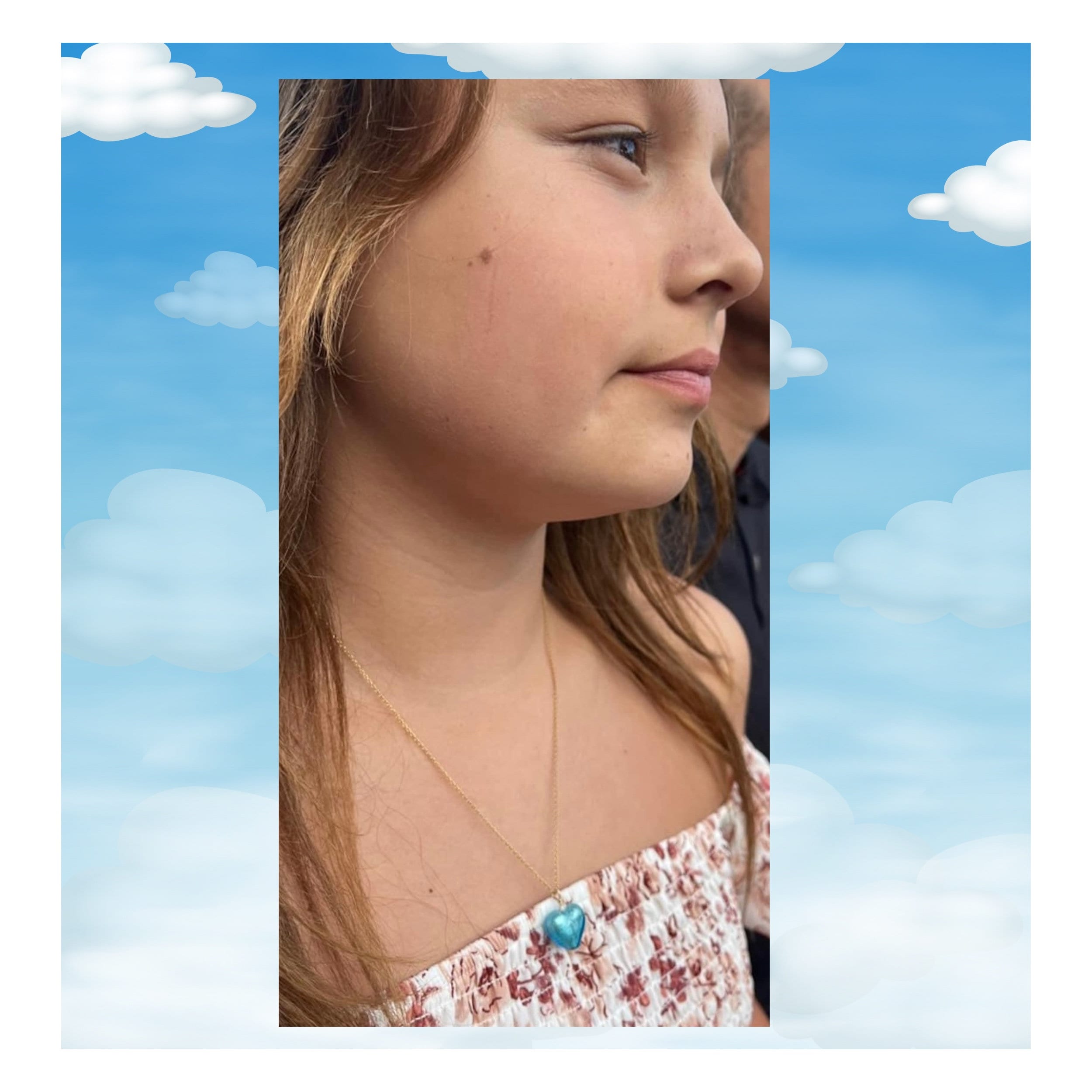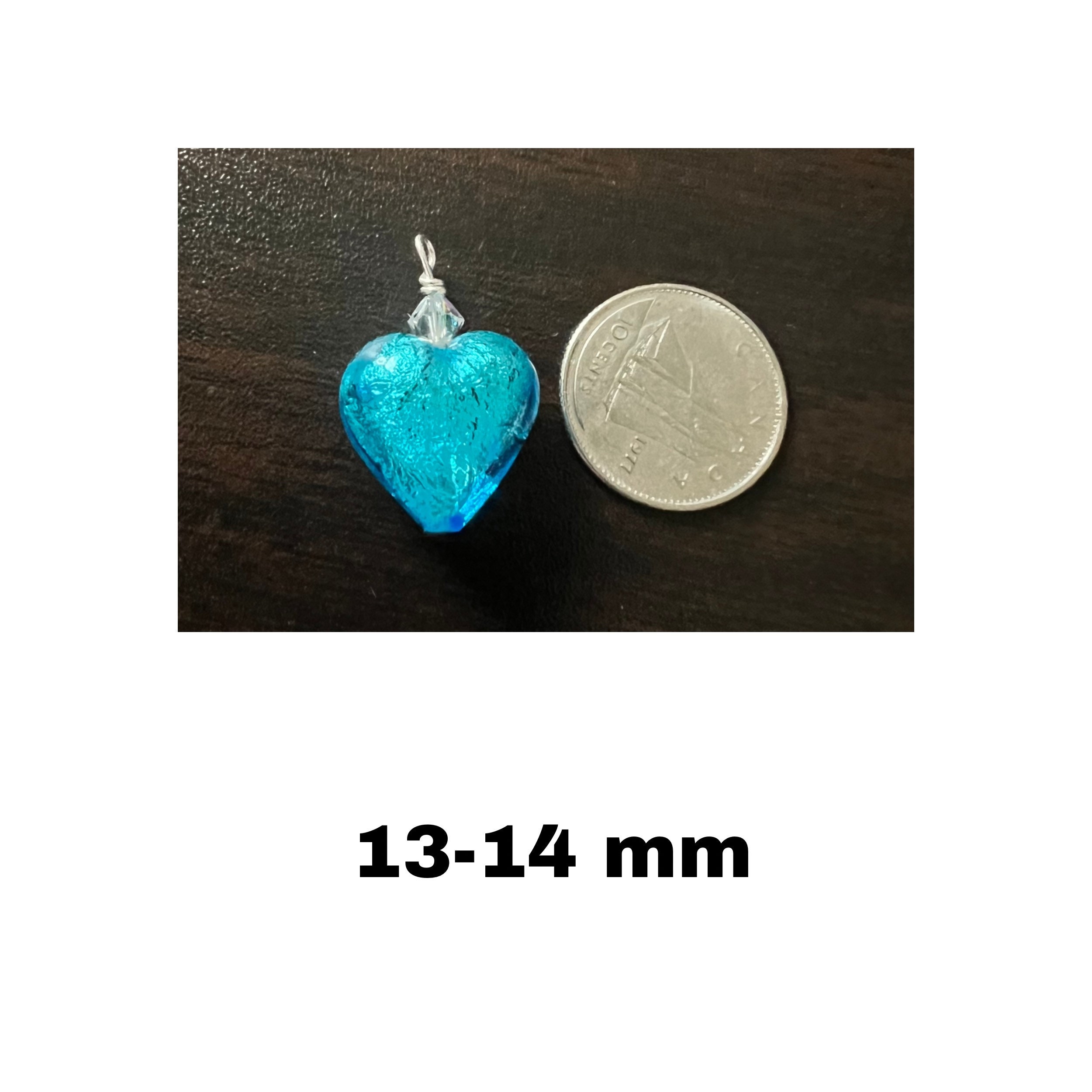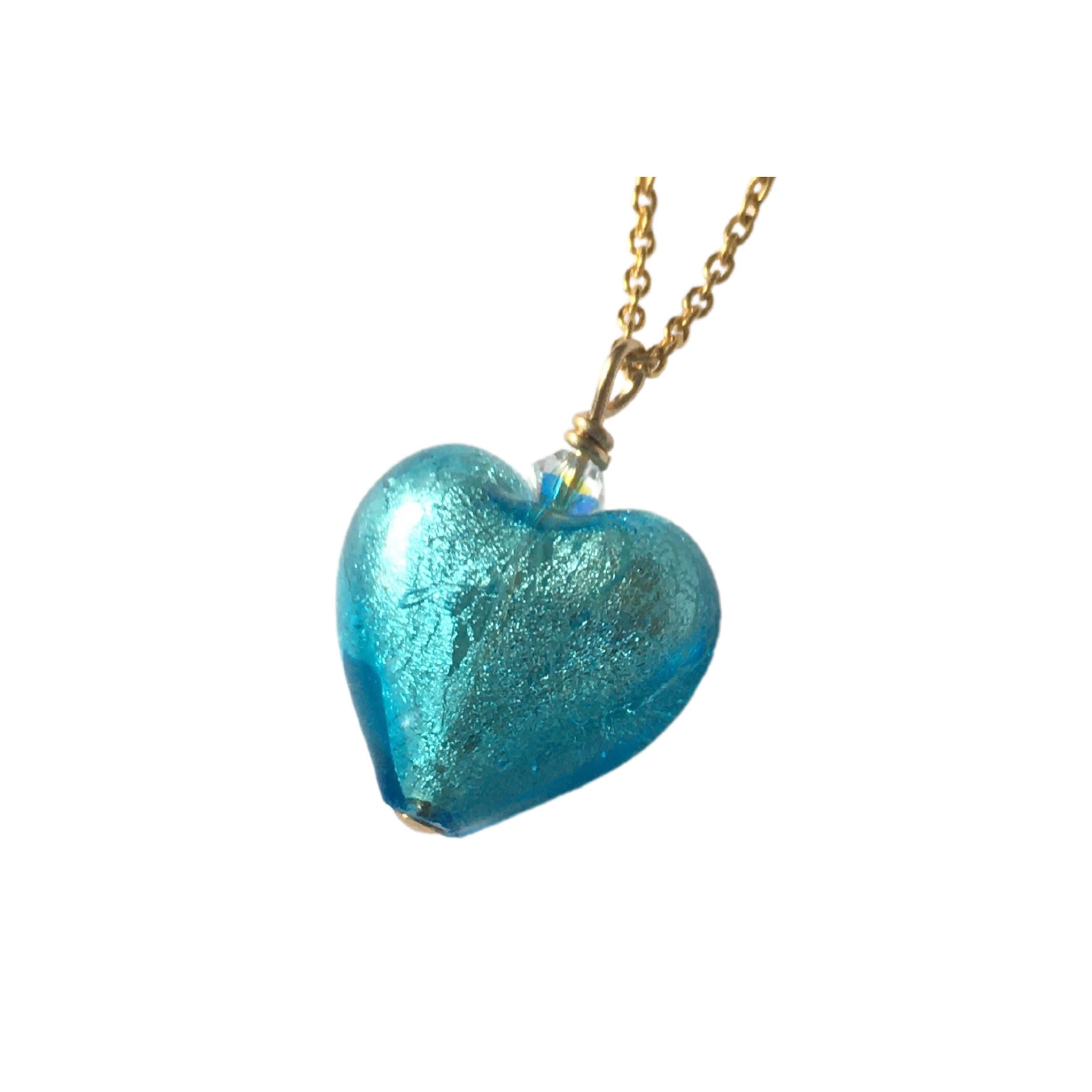 Turquoise blue fused with white Karat Gold heart. Size: 14mm ( smaller than a dime coin) - approx. 1/2 an inch. Choose Sterling Silver or 14 KT Gold filled chain.