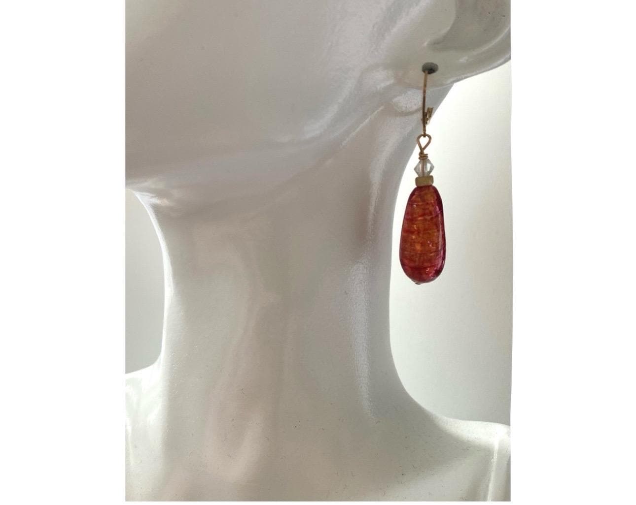 Venetian Murano Glass Copper colour Gold Teardrop earrings with 14 KT Gold filled & Swarovski Crystal bead accents. 14 KT Gold lever back clasps & beads.