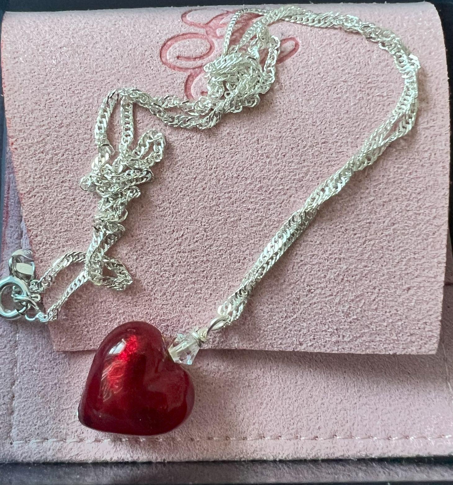 Very small deep Ruby Red genuine Murano Glass heart pendant. Size 12nmm ( smaller than a dime). Choose your length. Austrian Crystal bead accents. Italian Gold Sterling Chain. Larger size 14mm available.