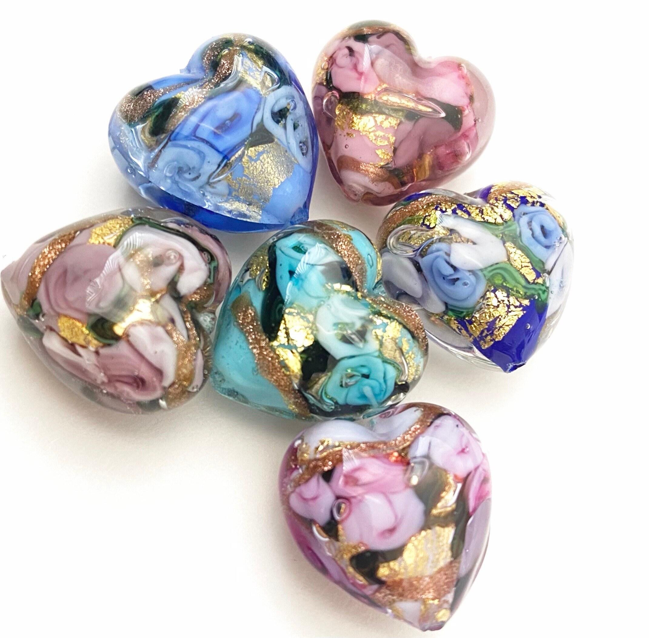 Murano Glass beads are never identical. You will notice a slight difference in the design or size of each bead. The colour and patterns may differ slightly due to the cut in the glass when beads were formed.