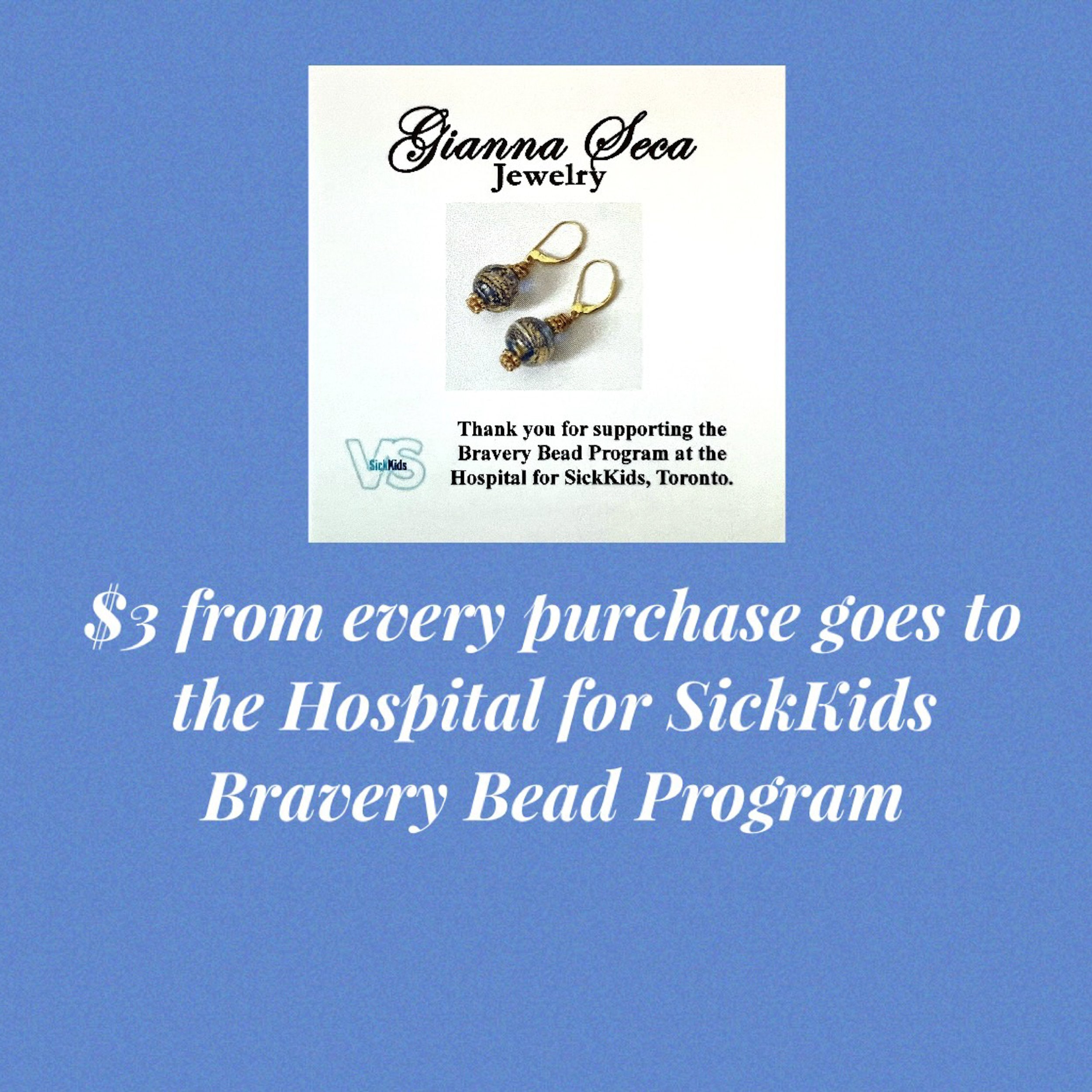 $3 from each purchase will be donated to the Bravery Bead Program at the hospital for SickKids in Toronto, Canada.